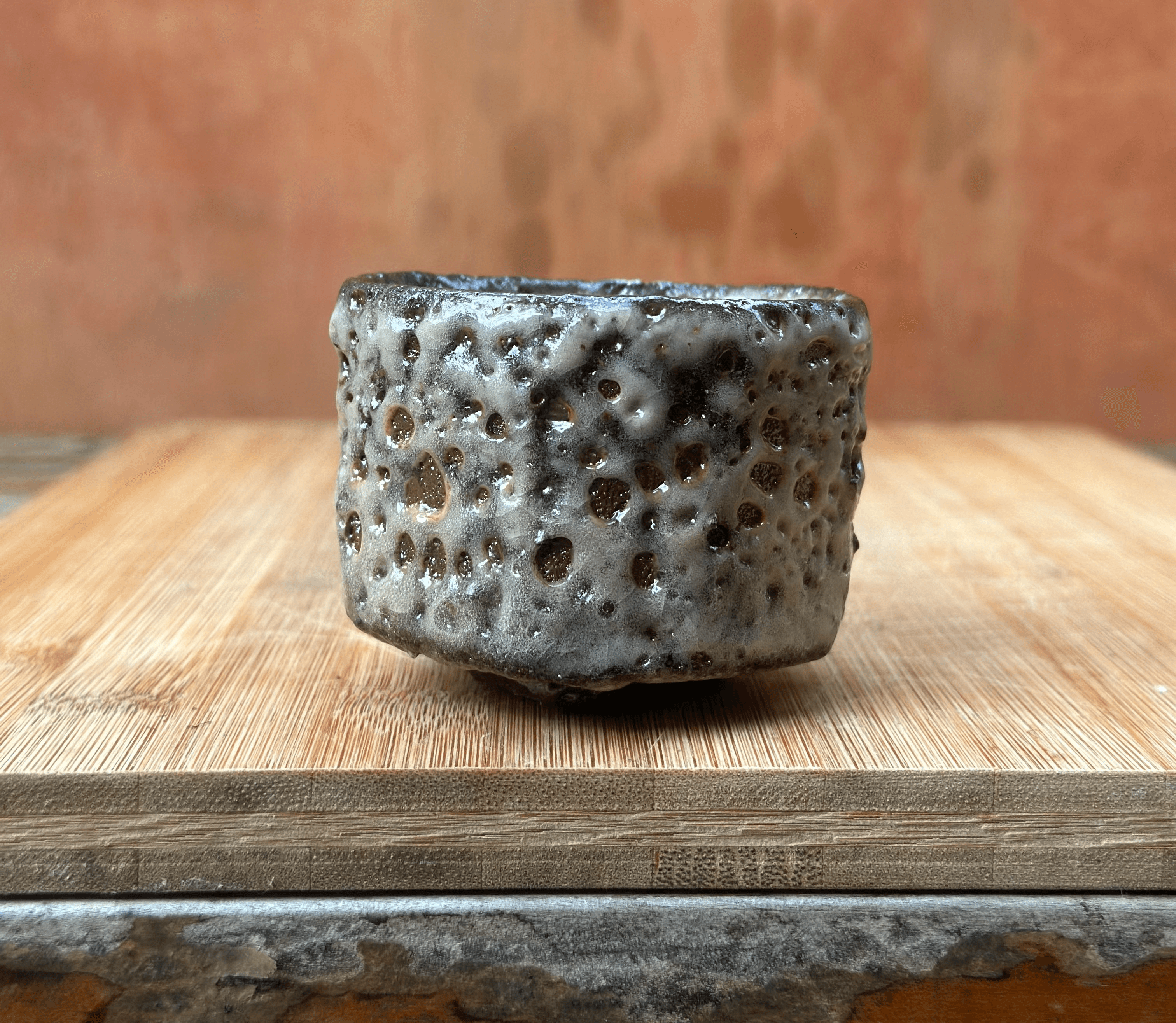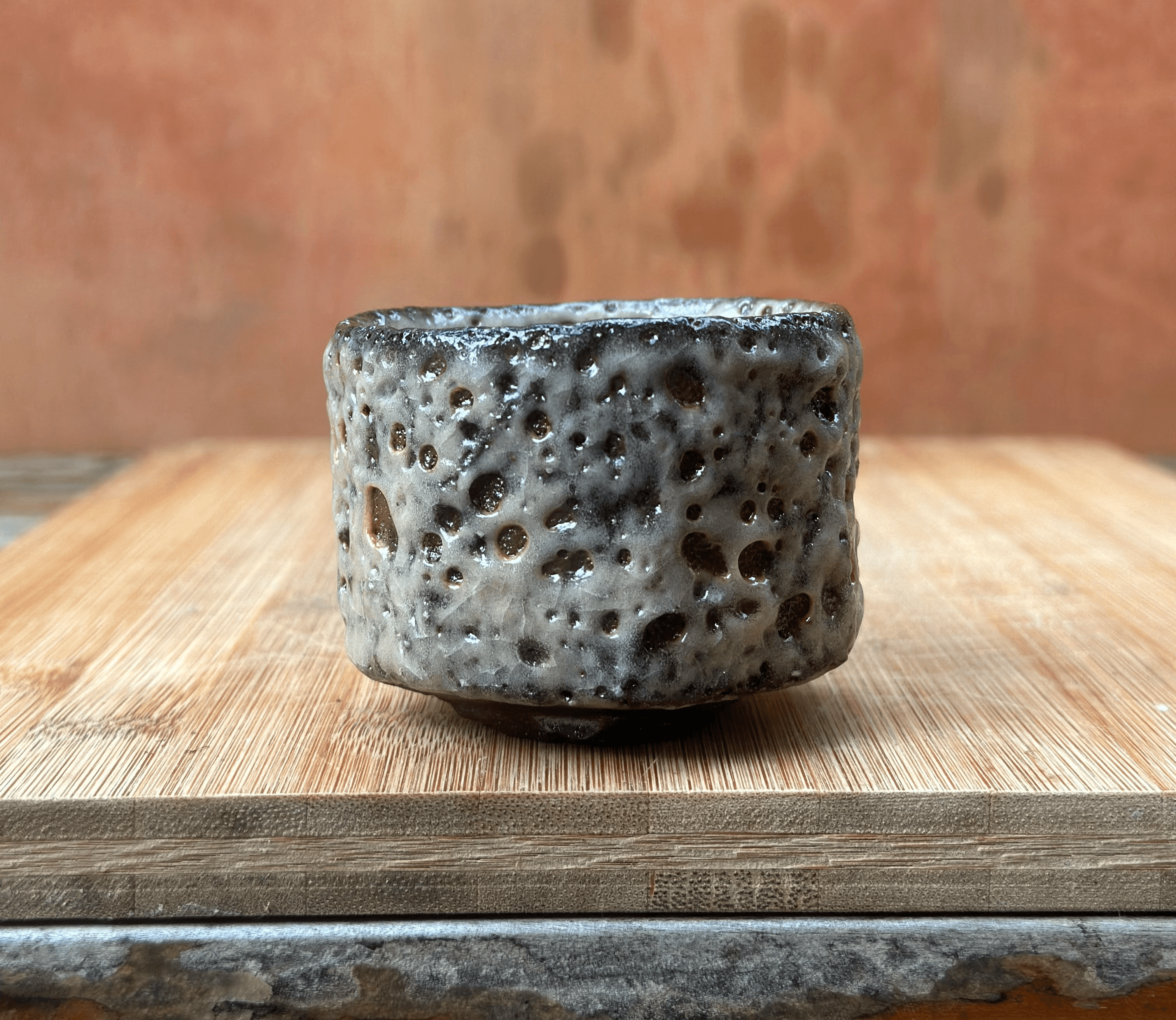Copo da linha Tsuchi em argila terracora, técnica de torno e morteiro, esmalte shino com queima de alta (cone 6).