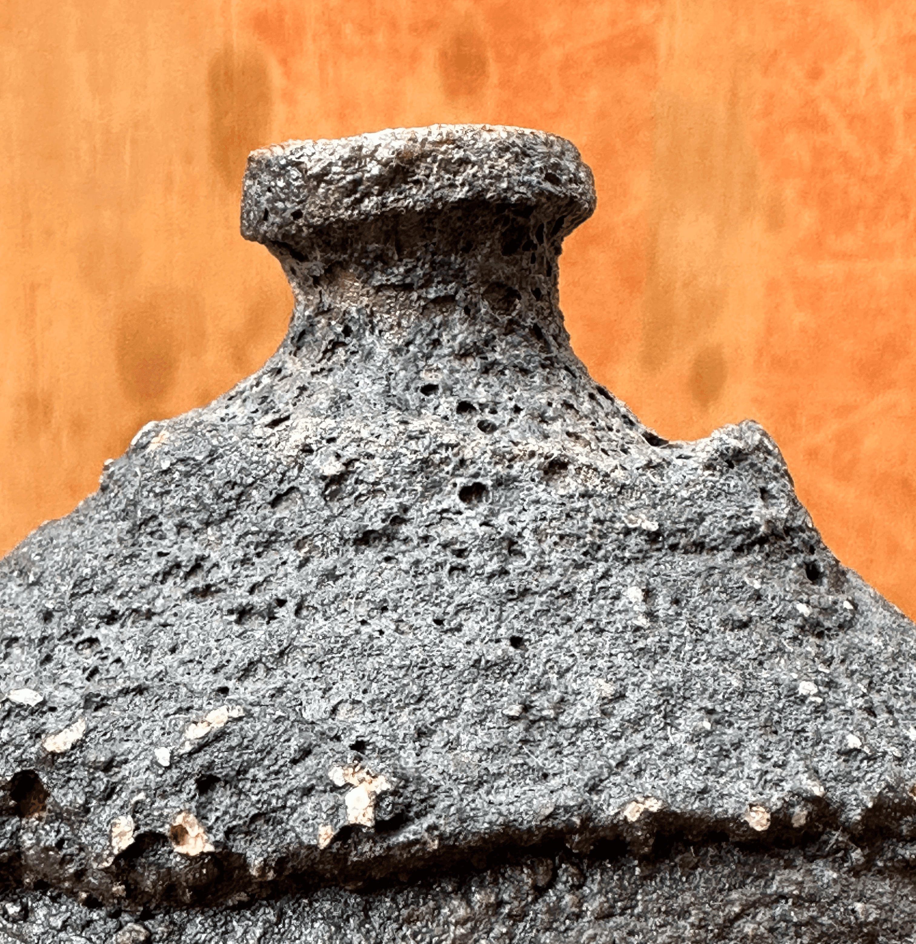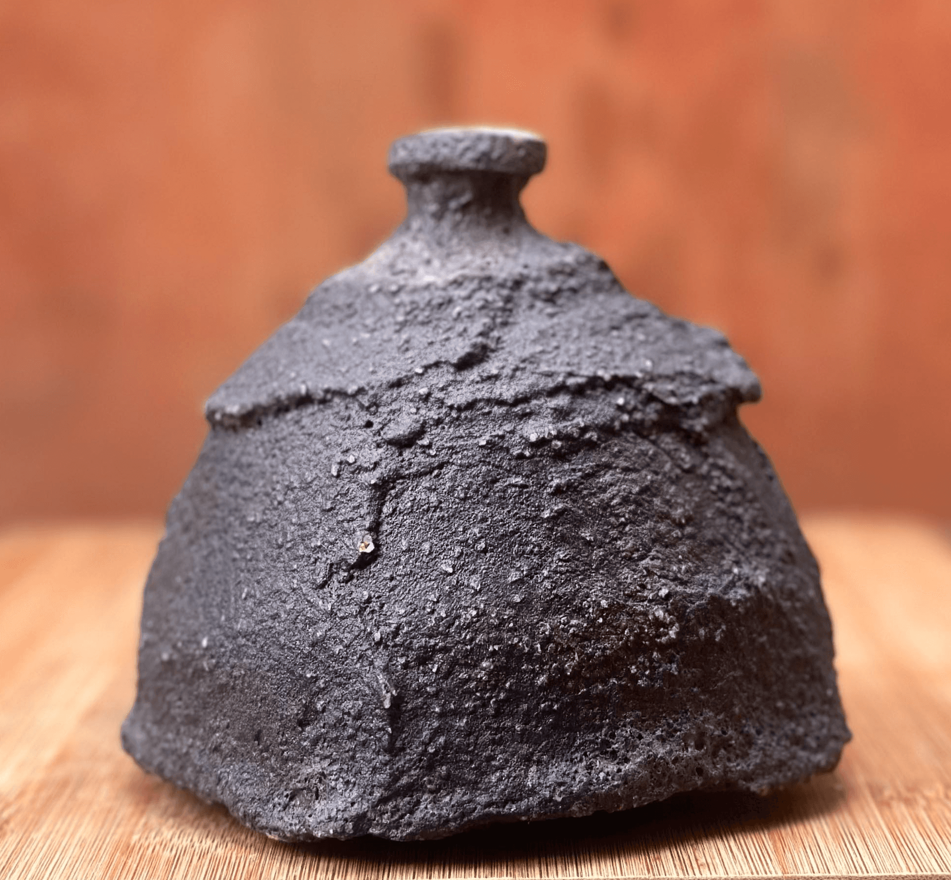 Garrafa de sake desenvolvida em técnica de torno + morteiro, esmalte transparente interno e esmalte lava externo com queima de alta cone 6.
