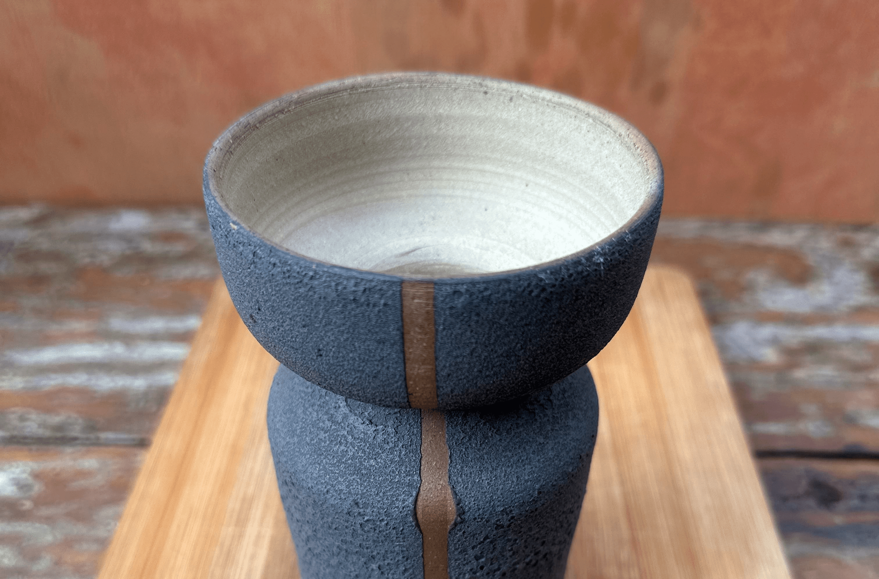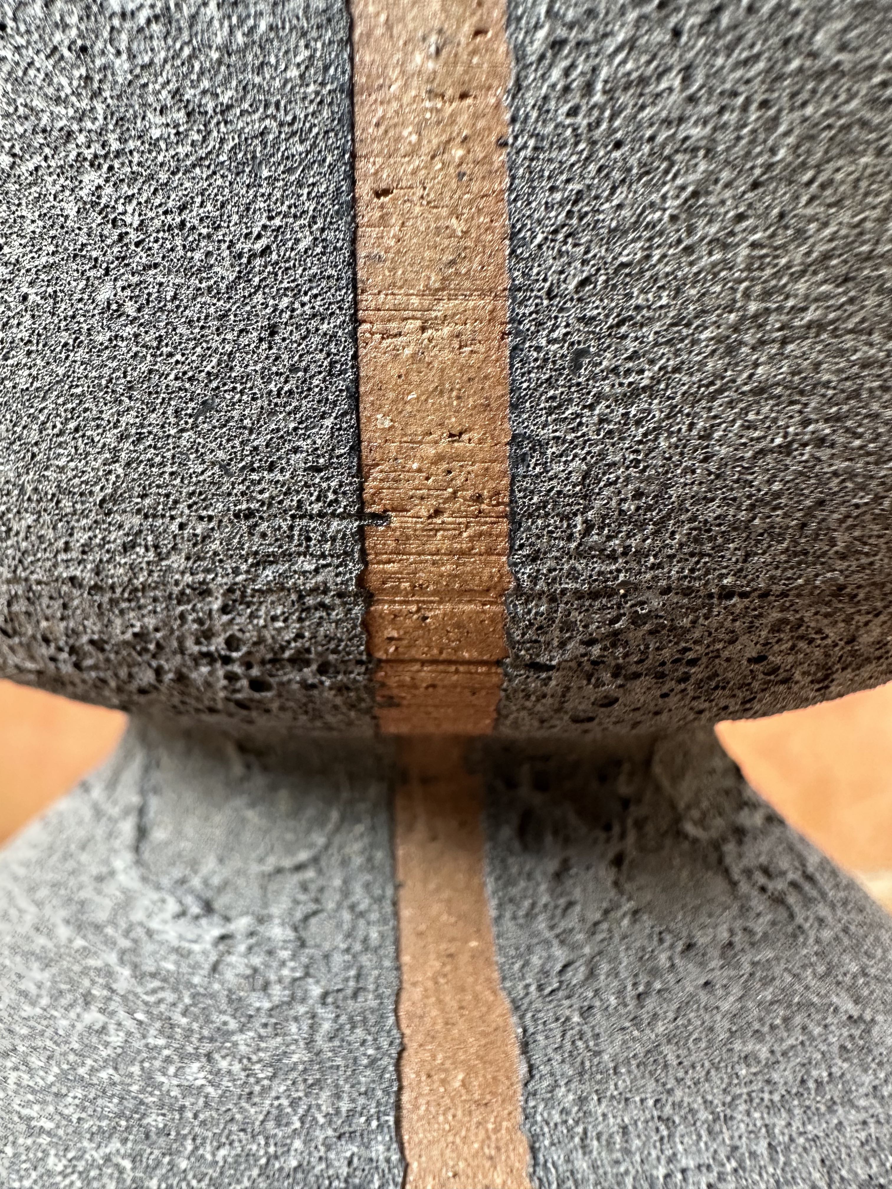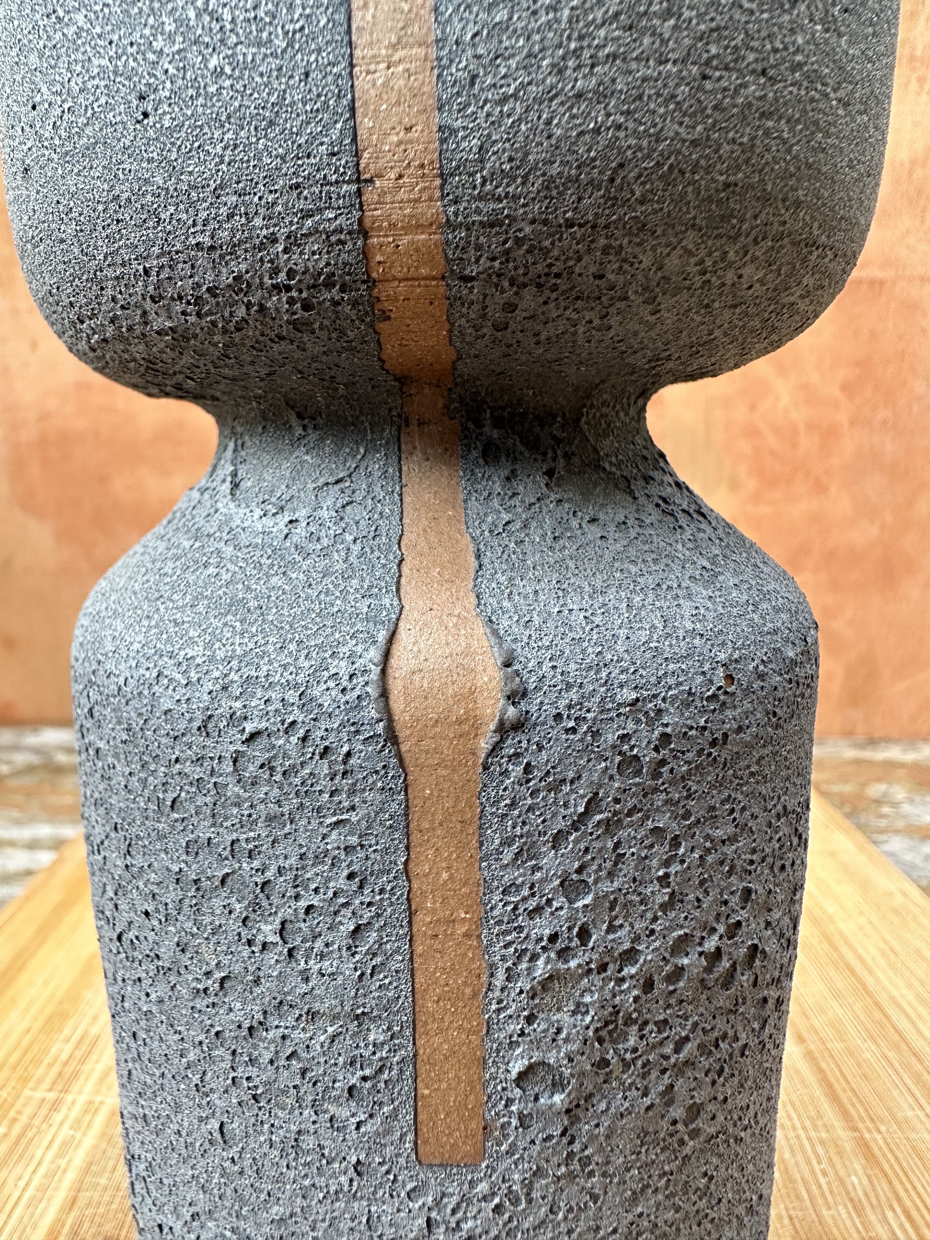 Vaso desenvolvida em técnica de torno, esmalte lava externo com queima de alta cone 6.